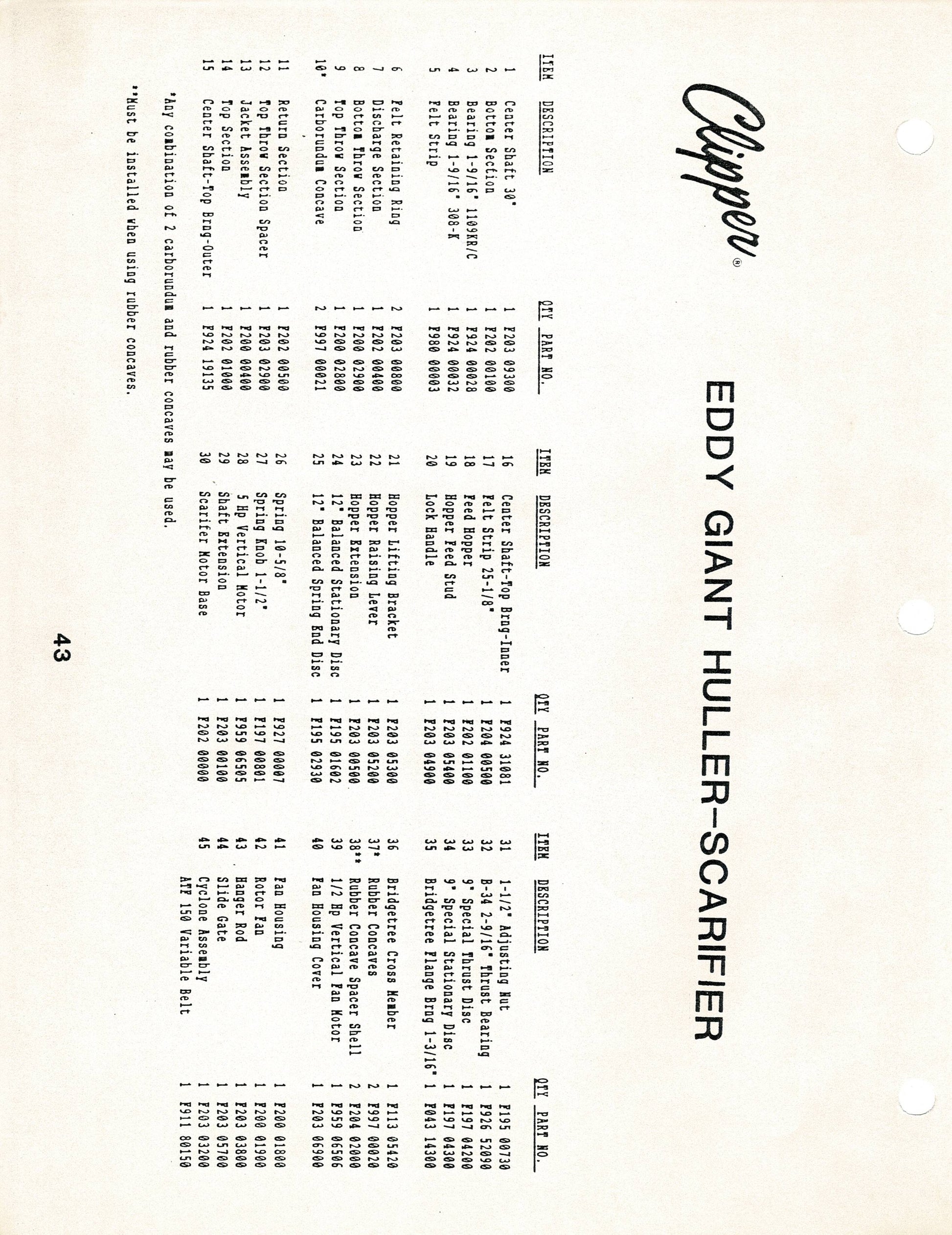 Eddy Giant Huller- Scarifier Carborundun Concave